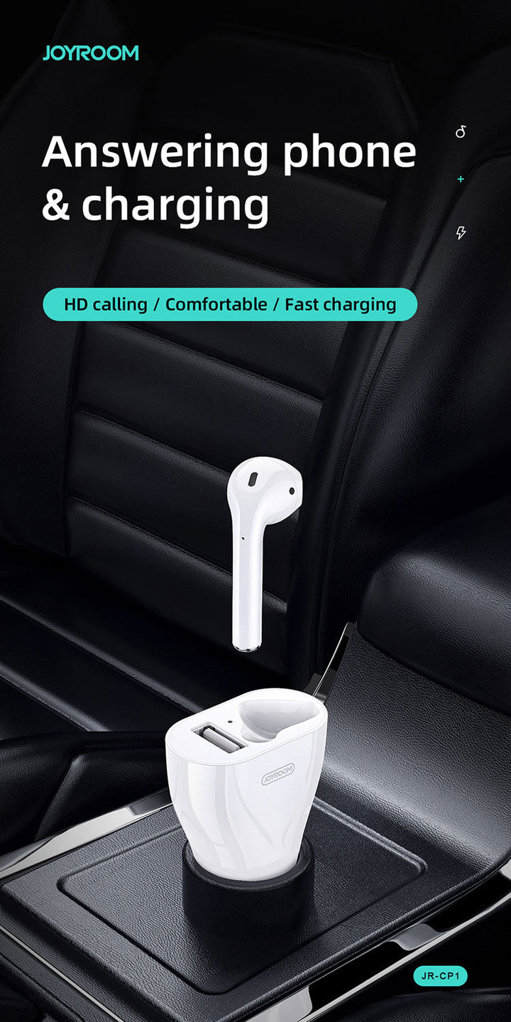 Joyroom JR-CP1 Car Charger with Bluetooth Earphone Touch Sensor On Earbud v5.0