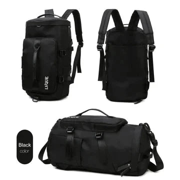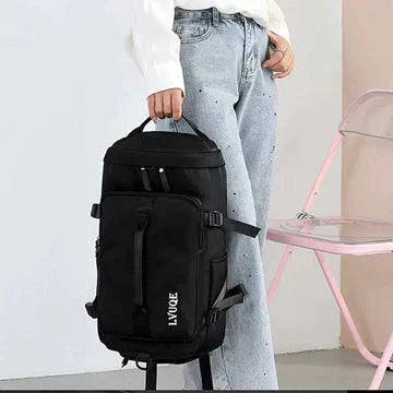 Large capacity travel backpack. It can hold a lot of things and can carry a laptop in the laptop compartment.